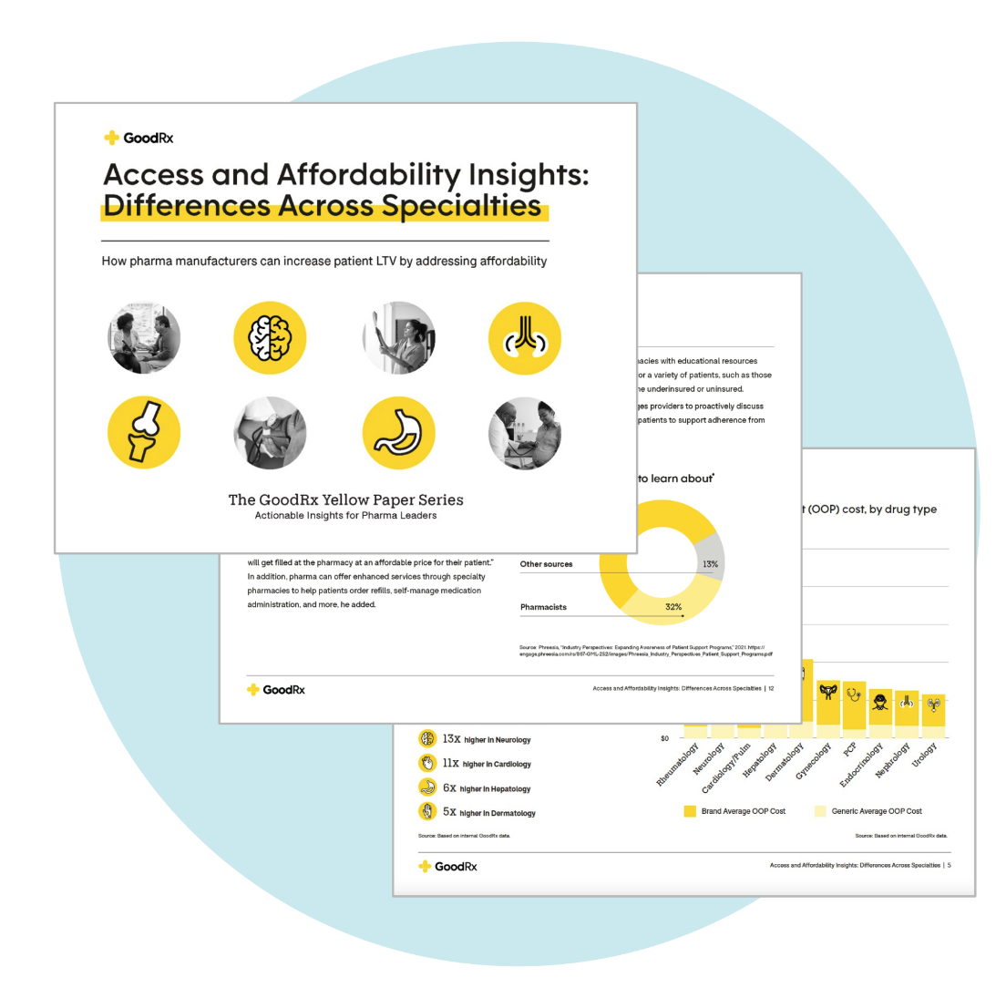 GoodRx’s latest Yellow Paper provides fresh insights into the affordability gap for branded drugs across a range of specialties, shows how out-of-pocket (OOP) costs impact patient behavior, and offers three strategies you can use to improve communication about affordability options to patients and providers.