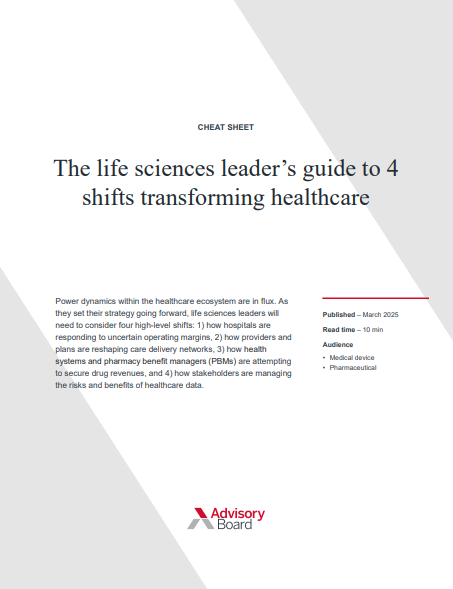 Download this cheat sheet to learn about four major shifts that are impacting the industry and how pharmaceutical organizations can respond.