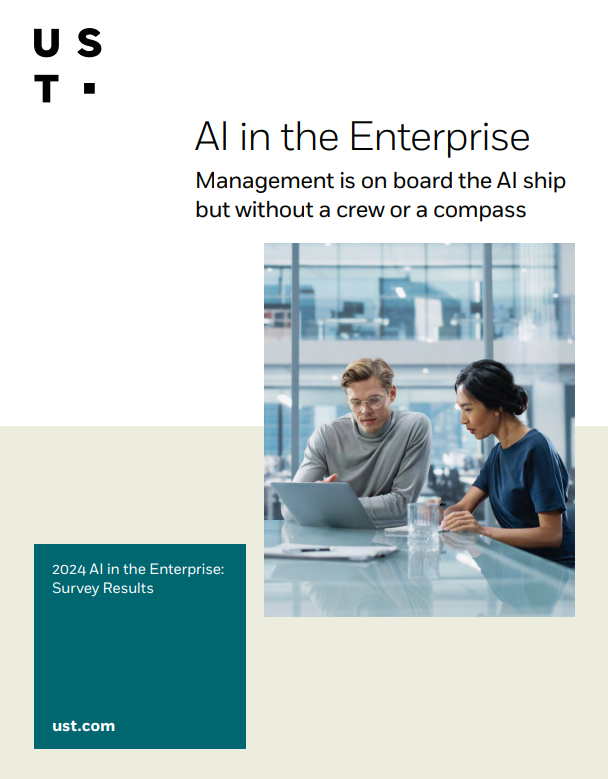 UST’s 2024 AI in the Enterprise Survey found out – and we’re excited to share the results. In this must-read report, senior IT decision-makers from across the globe reveal their thoughts on AI adoption, its challenges and potential, while UST experts share advice.