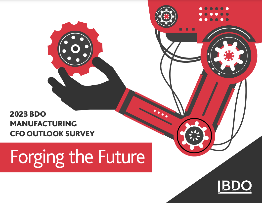 Start building your resilience roadmap today. Download the 2023 BDO Manufacturing CFO Outlook Survey, where we uncover how 125 manufacturing CFOs are planning to get ahead of the competition in 2023.