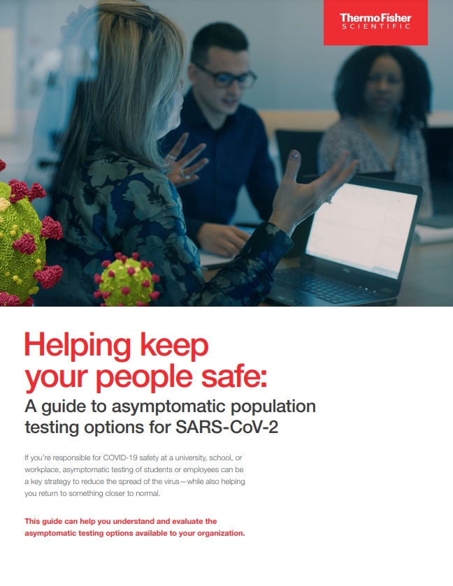 Thermo Fisher Scientific created this Asymptomatic Population Testing Guide to provide perspective on strategies, technologies, and approaches to using COVID-19 testing to help keep your campus open.
