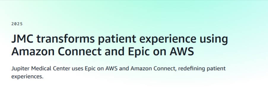 By adopting Epic on AWS with Amazon Connect, JMC unified patient experiences and improved operations. Outcomes included: