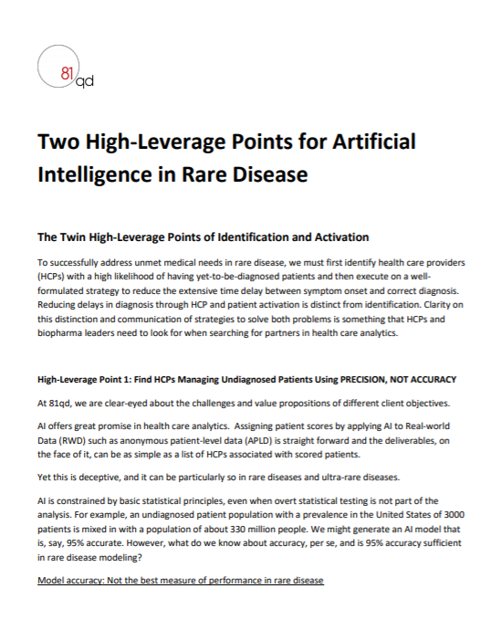 The first we’ll refer to as “When 95% accuracy is 100% Wrong”, and the second we’ll refer to as “Rare Disease Identification is not Diagnosis.” We describe what’s at stake in each case and outline a plan for transforming these two high risk points into high leverage points in your next AI-driven rare disease project.