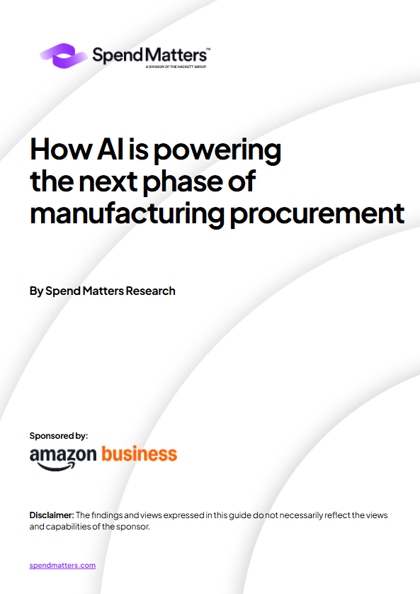Discover how artificial intelligence is revolutionizing direct materials procurement. This Spend Matters research guide, sponsored by Amazon Business, reveals how leading manufacturing and industrial organizations are transforming procurement into a strategic driver of business continuity, innovation, and financial performance.