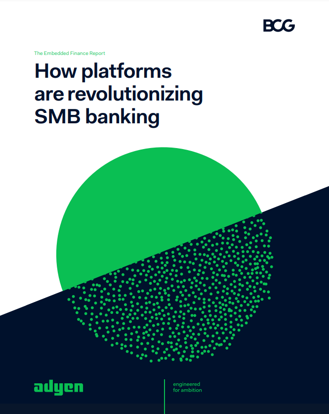 BCG and the financial technology platform Adyen conducted a comprehensive evaluation of the embedded finance potential, leveraging quantitative and qualitative data gathered from more than 50 leading platforms and marketplaces and more than 2,000 SMB users globally.