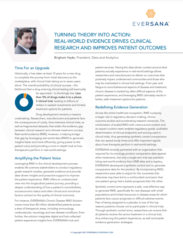 Real-world evidence (RWE) is helping bridge that gap by leveraging real-world data (RWD) to generate insights faster and more efficiently, giving power to the patient voice and providing a more in-depth look at how therapeutics perform in real-world settings.